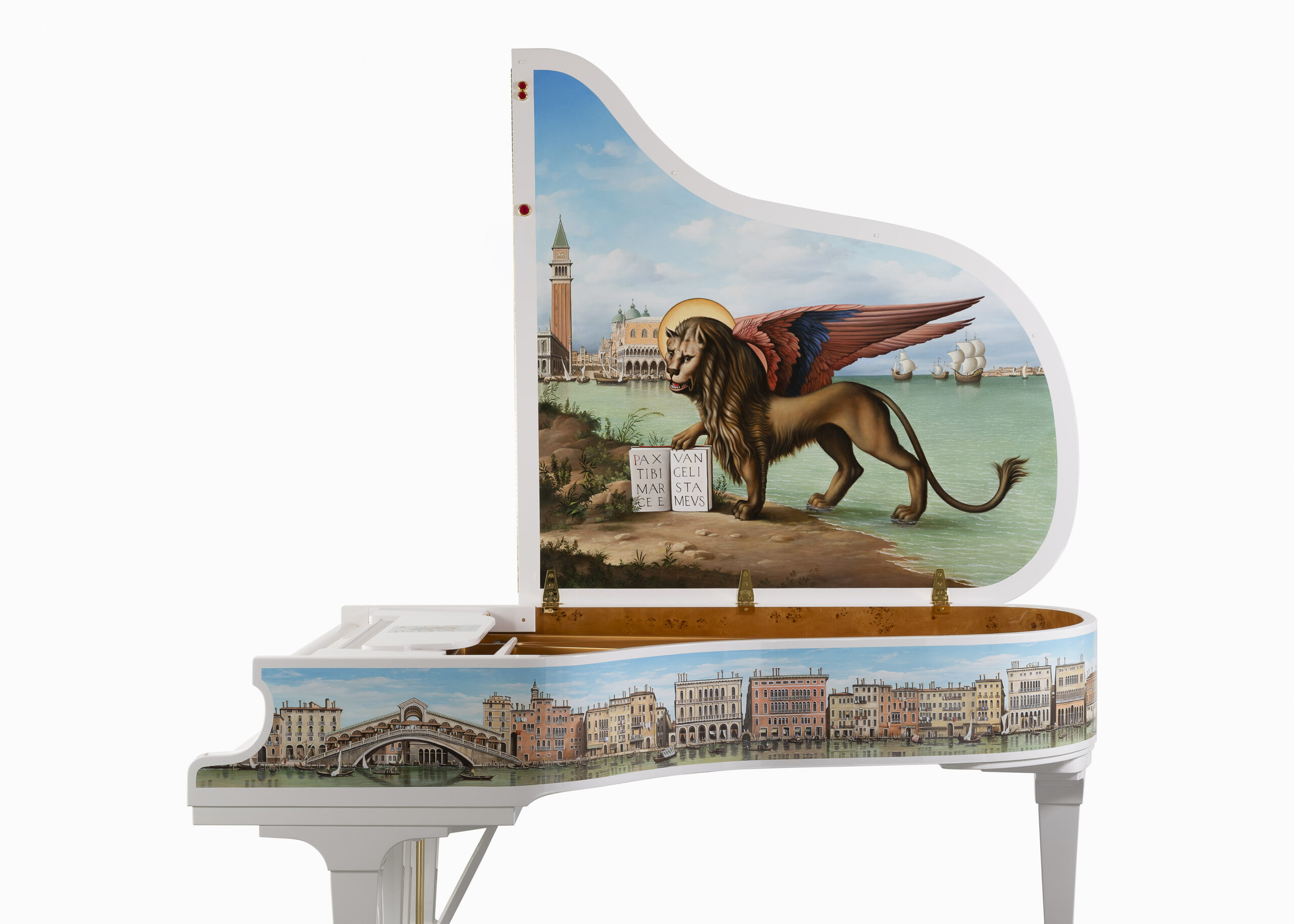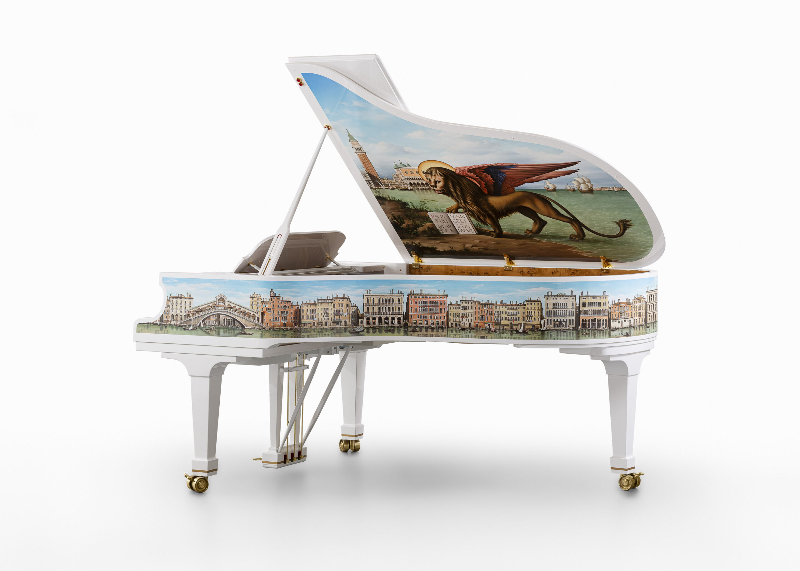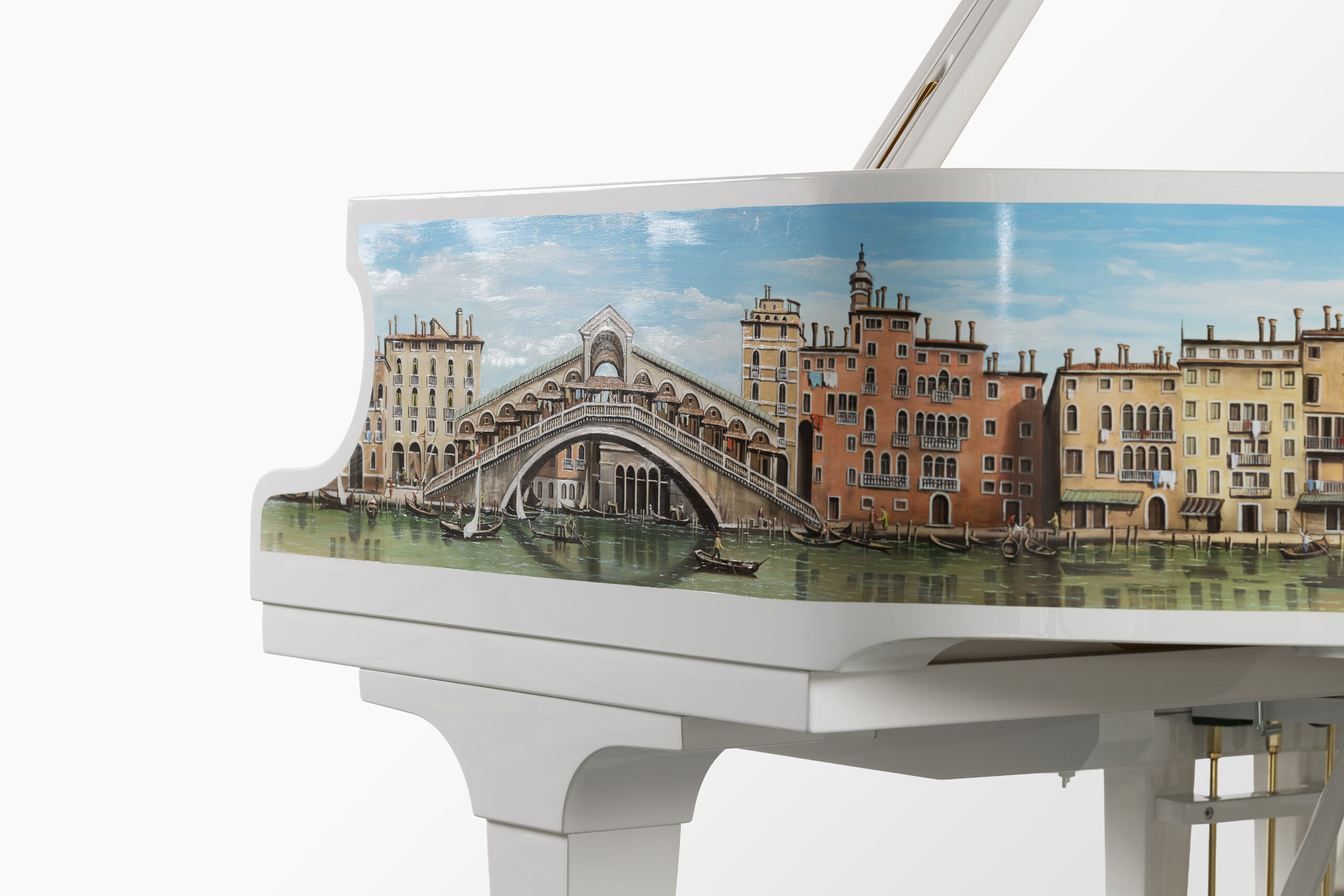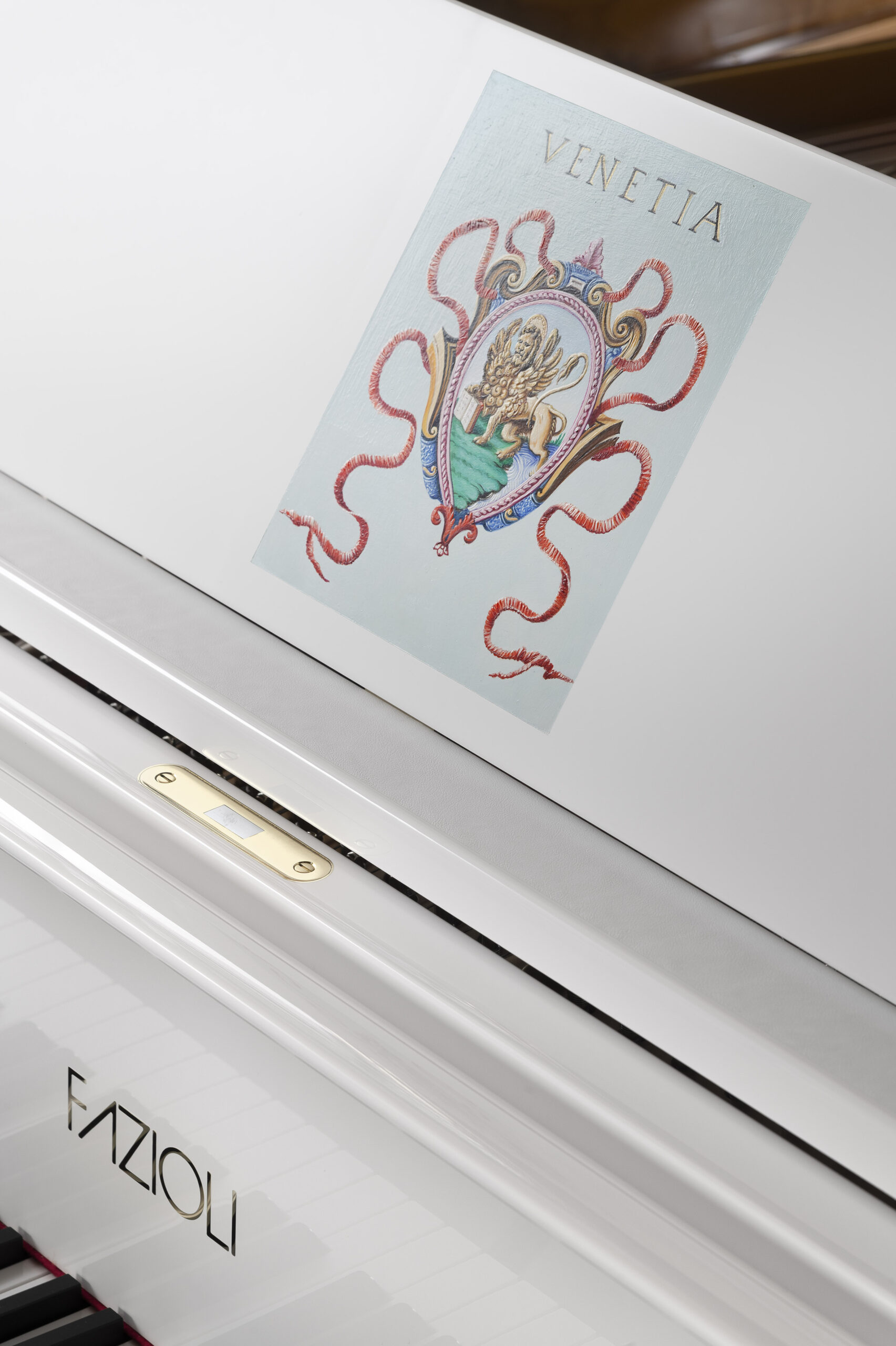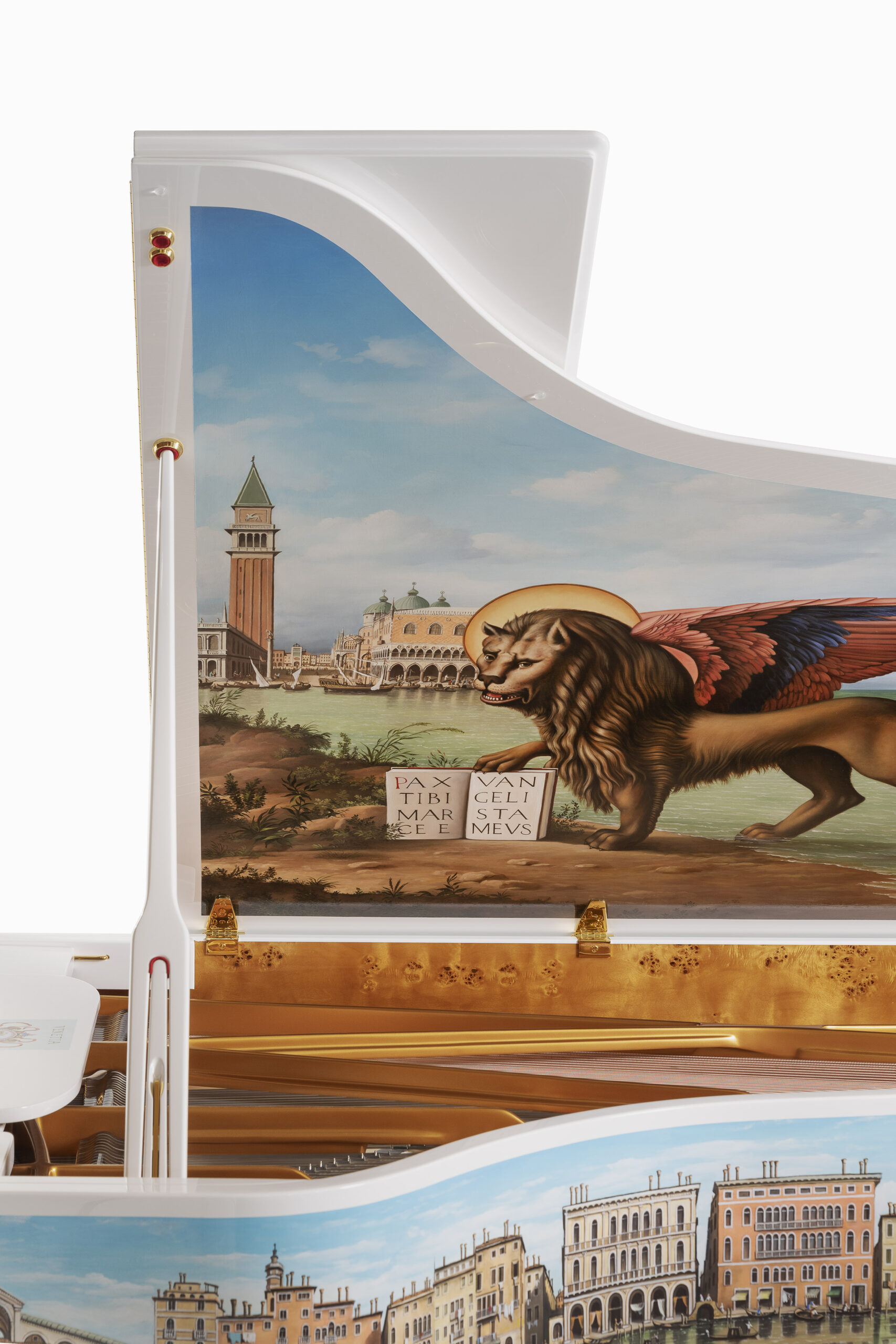 VENETIA is not merely a tribute to Venice, but a piano woven with symbols and references to the noblest values. The side of the instrument becomes a canvas for a visual narrative of the iconic Grand Canal, while the lid features the Lion of Saint Mark, an emblem of silent strength founded on peace and justice. In this F212 model, the design is layered with meaning: the Rialto Bridge becomes a metaphor for the meeting between the performer and the listener.