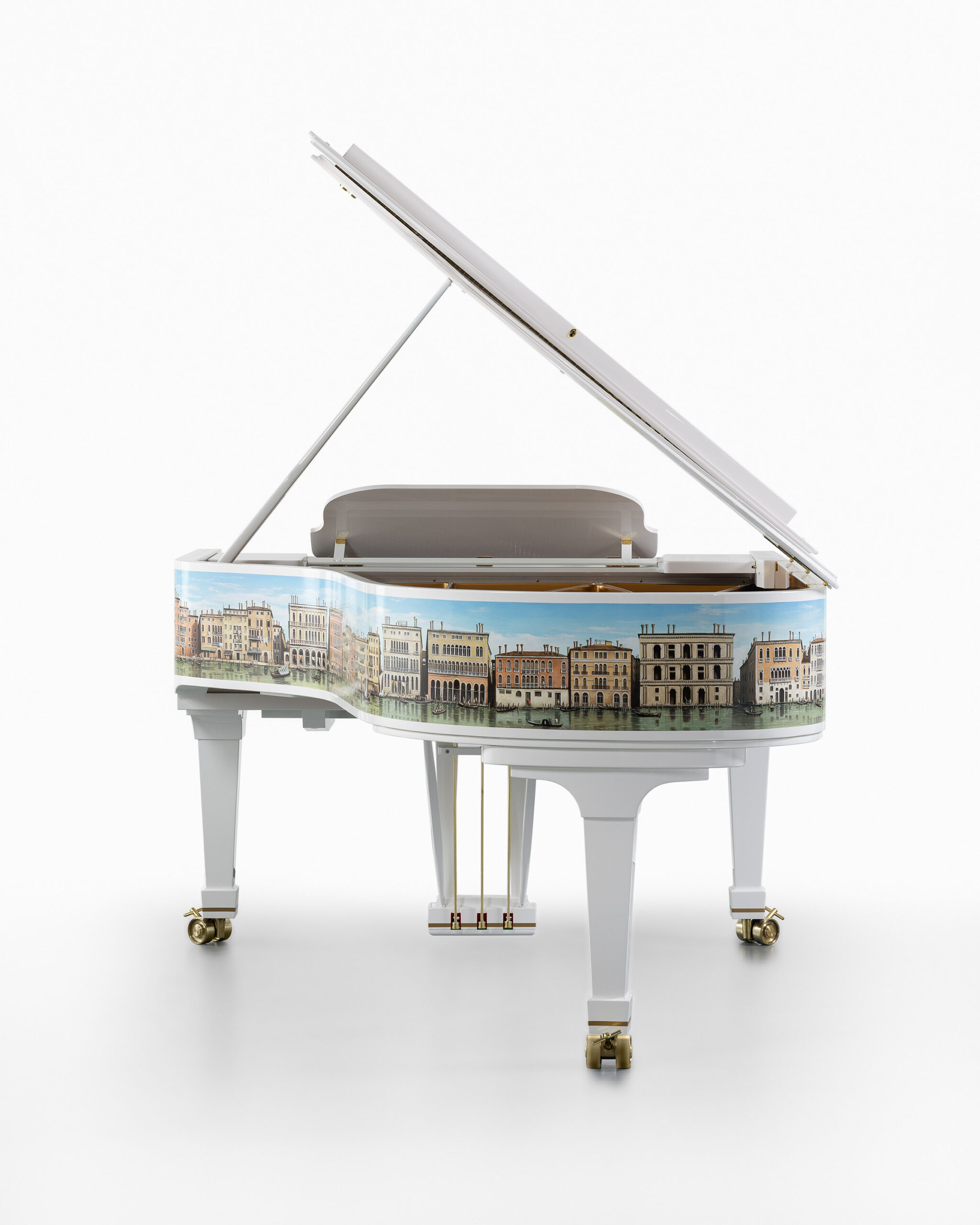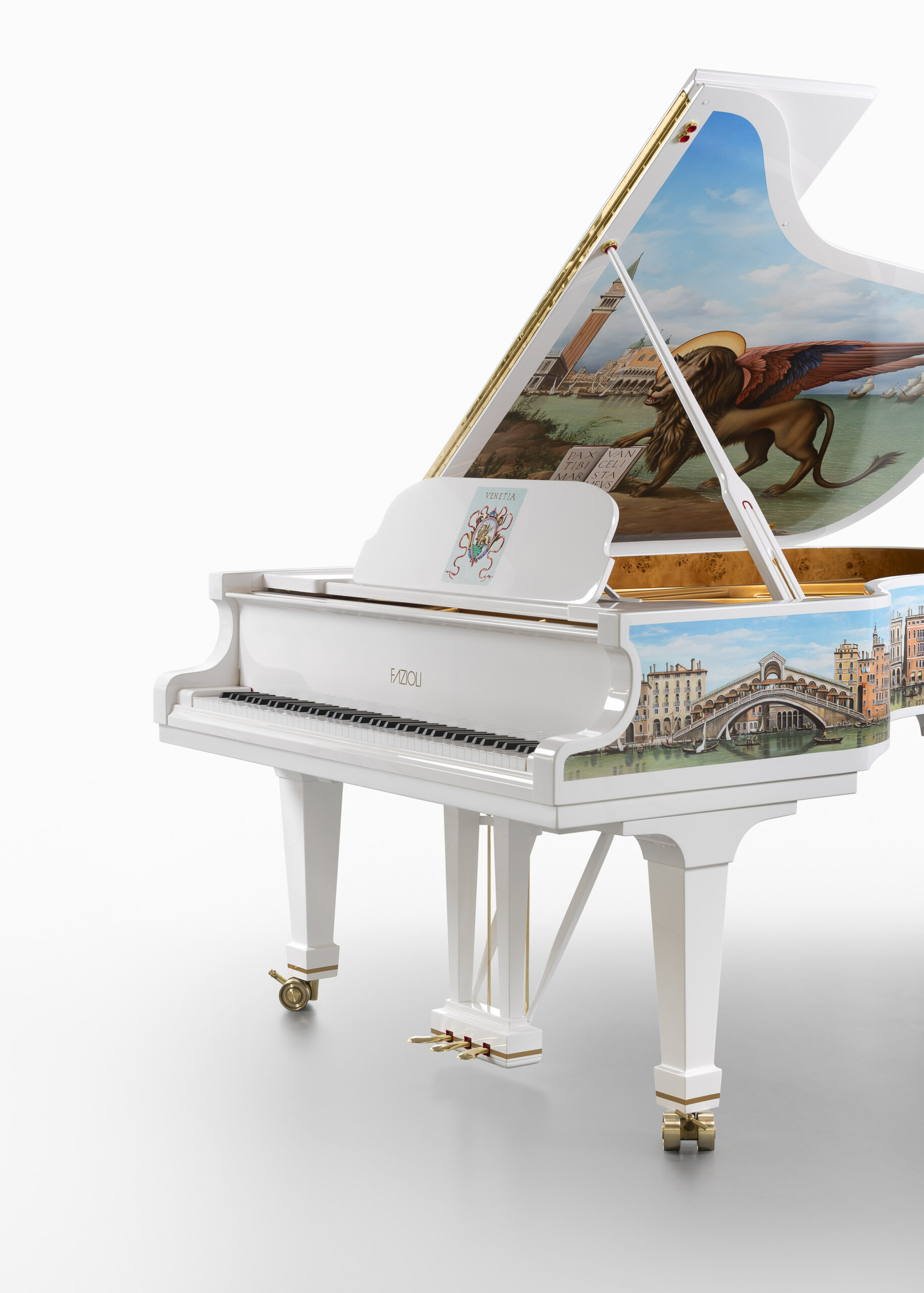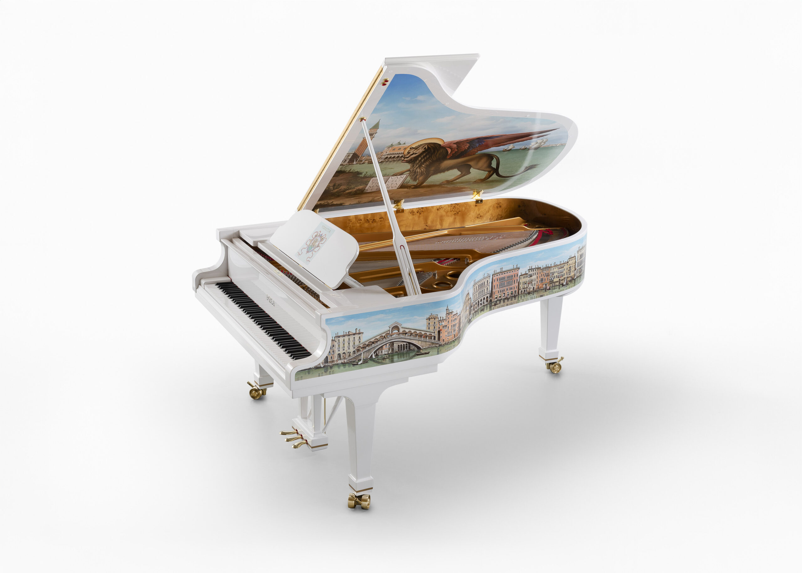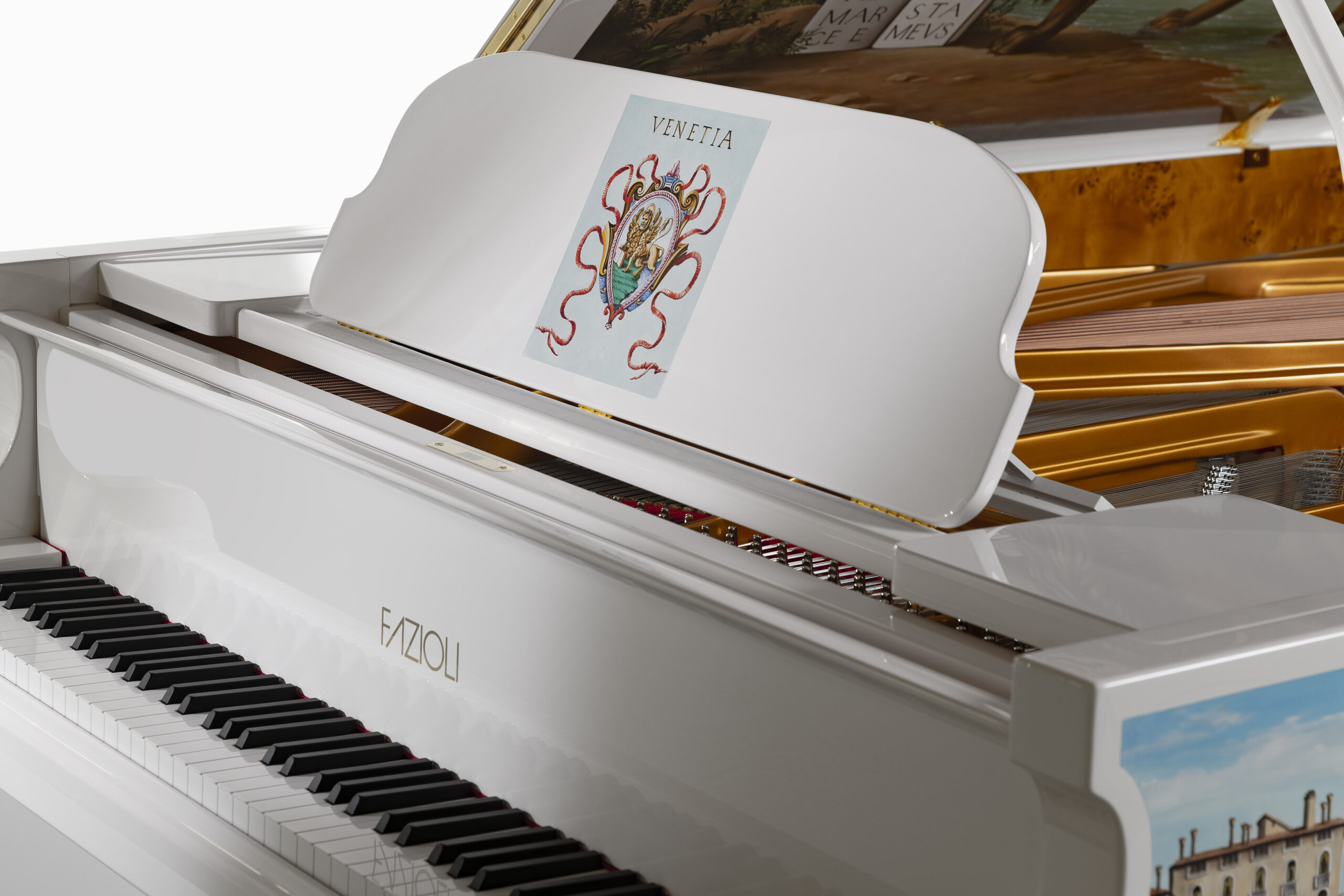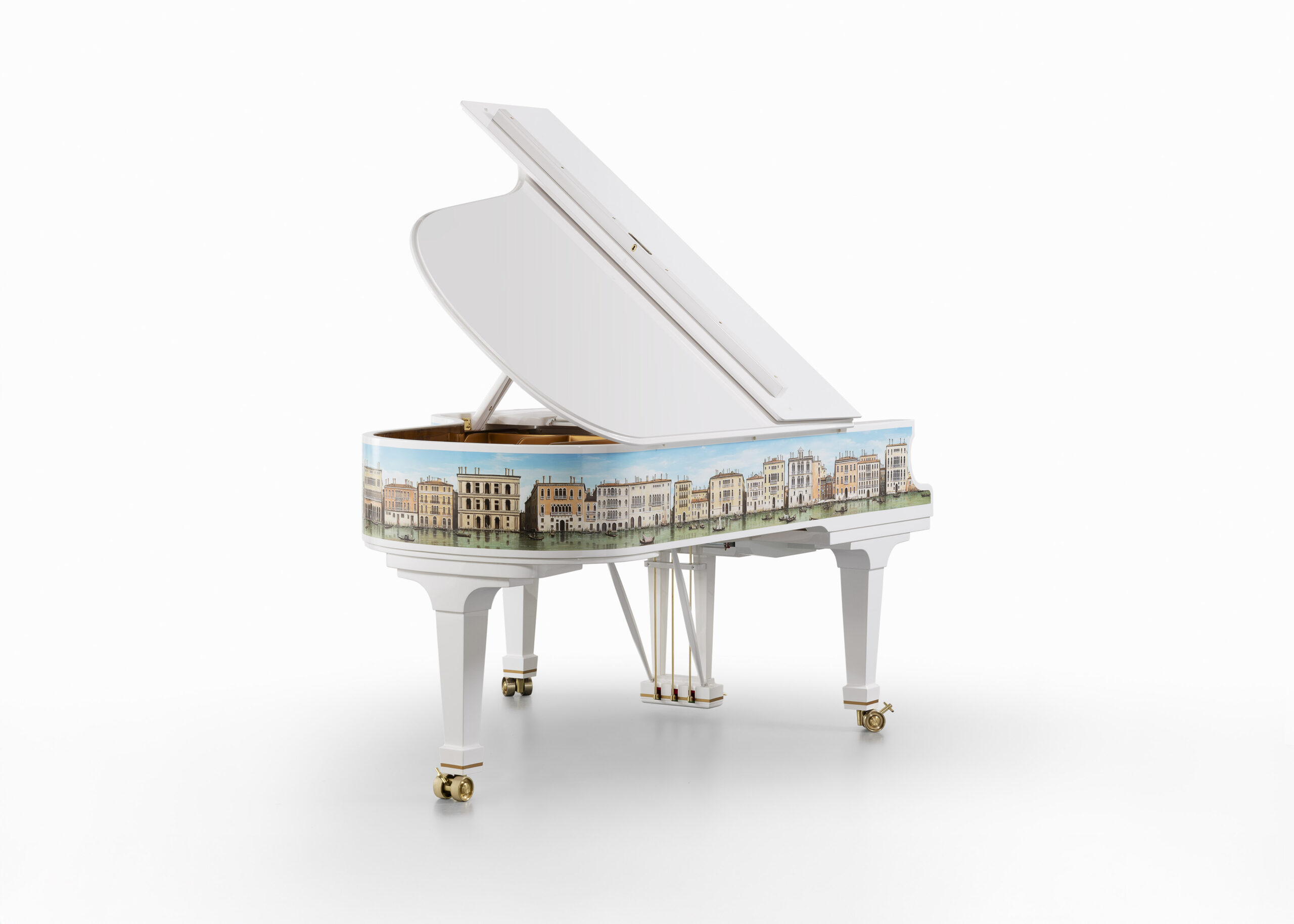 VENETIA is not merely a tribute to Venice, but a piano woven with symbols and references to the noblest values. The side of the instrument becomes a canvas for a visual narrative of the iconic Grand Canal, while the lid features the Lion of Saint Mark, an emblem of silent strength founded on peace and justice. In this F212 model, the design is layered with meaning: the Rialto Bridge becomes a metaphor for the meeting between the performer and the listener.